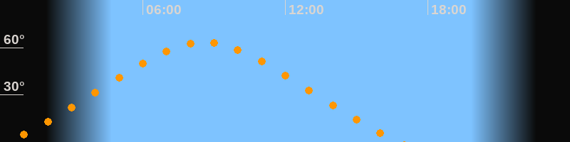 | Höchster Stand (Kulmination) | 08:34 Uhr (h = 63,4°) |