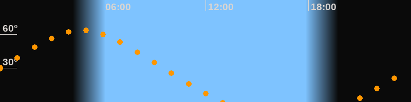 | Höchster Stand (Kulmination) | 04:46 Uhr (h = 63,4°) |