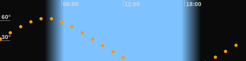 | Höchster Stand (Kulmination) | 04:30 Uhr (h = 63,4°) |
