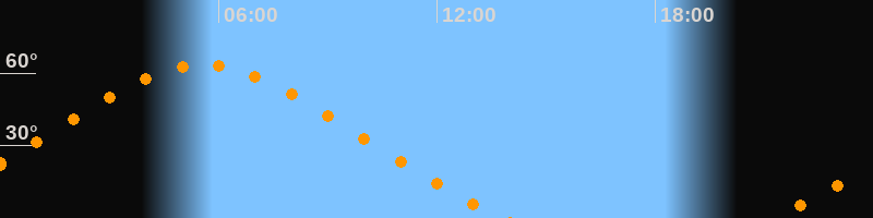 | Höchster Stand (Kulmination) | 05:34 Uhr (h = 63,4°) |