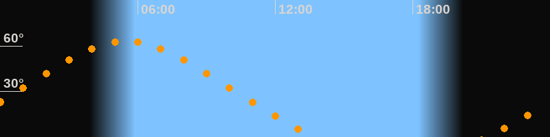 | Höchster Stand (Kulmination) | 05:30 Uhr (h = 63,4°) |