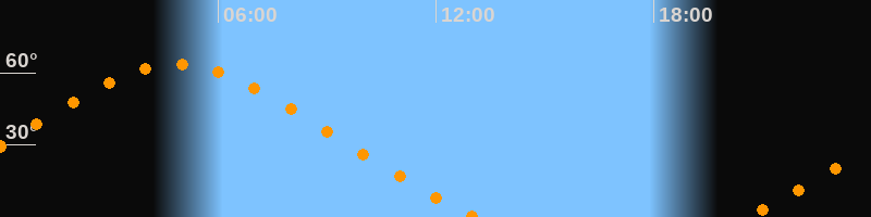 | Untergang | 13:07 Uhr im Nordwesten (αAz = 311,1°) |
