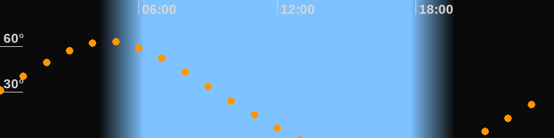 | Untergang | 12:55 Uhr im Nordwesten (αAz = 311,1°) |