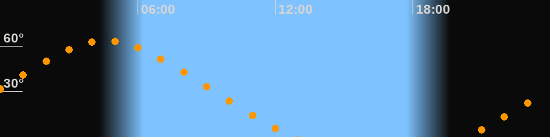 | Untergang | 12:51 Uhr im Nordwesten (αAz = 311,1°) |