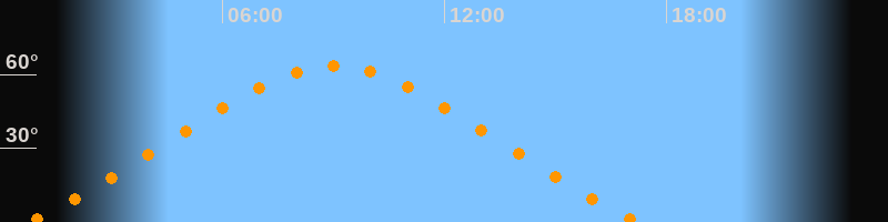 | Höchster Stand (Kulmination) | 09:00 Uhr (h = 63,4°) |