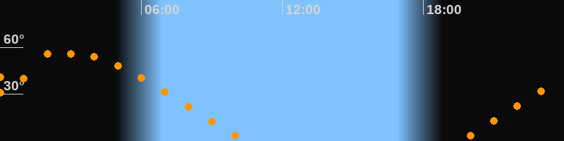 | Aufgang | 19:29 Uhr im Nordosten (αAz = 62,5°) |