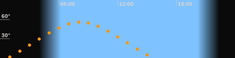 | Höchster Stand (Kulmination) | 08:10 Uhr (h = 55,8°) |