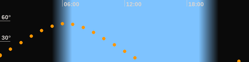 Höchster Stand (Kulmination)06:18 Uhr (h = 55,8°)