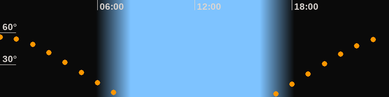 | Aufgang | 16:34 Uhr im Nordosten (αAz = 62,5°) |