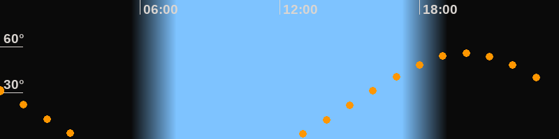 | Aufgang | 12:30 Uhr im Nordosten (αAz = 62,5°) |