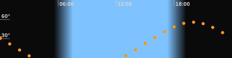 | Aufgang | 12:27 Uhr im Nordosten (αAz = 62,5°) |