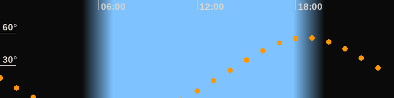 | Höchster Stand (Kulmination) | 18:36 Uhr (h = 55,8°) |