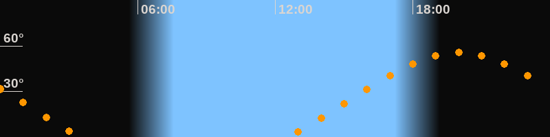| Aufgang | 12:32 Uhr im Nordosten (αAz = 62,5°) |