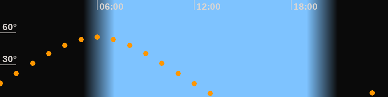 | Höchster Stand (Kulmination) | 06:00 Uhr (h = 55,8°) |
