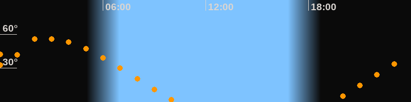 | Aufgang | 19:18 Uhr im Nordosten (αAz = 62,5°) |