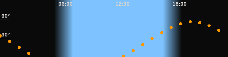 | Aufgang | 12:45 Uhr im Nordosten (αAz = 62,5°) |