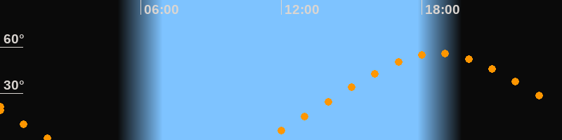 | Aufgang | 11:13 Uhr im Nordosten (αAz = 62,5°) |