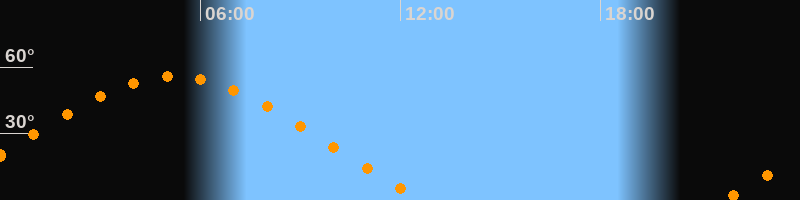 | Höchster Stand (Kulmination) | 05:12 Uhr (h = 55,8°) |