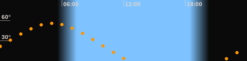 | Untergang | 12:30 Uhr im Nordwesten (αAz = 297,5°) |