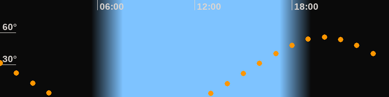 | Aufgang | 12:31 Uhr im Nordosten (αAz = 62,5°) |