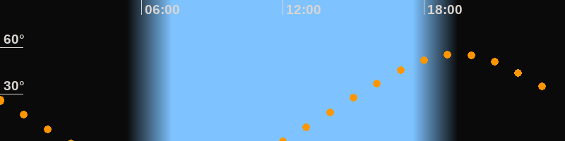 | Höchster Stand (Kulmination) | 19:23 Uhr (h = 55,8°) |