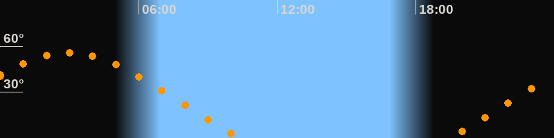 | Aufgang | 19:26 Uhr im Nordosten (αAz = 62,5°) |