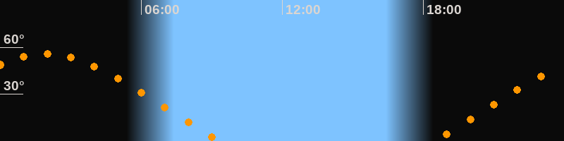 | Aufgang | 18:24 Uhr im Nordosten (αAz = 62,5°) |