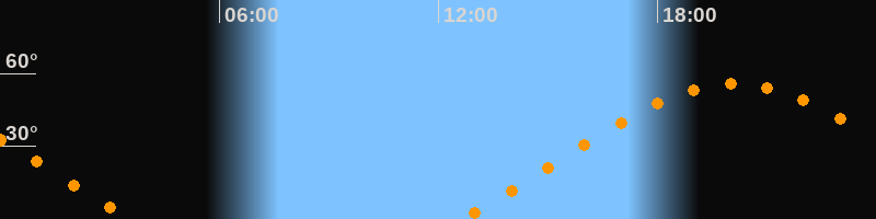 | Aufgang | 12:38 Uhr im Nordosten (αAz = 62,5°) |