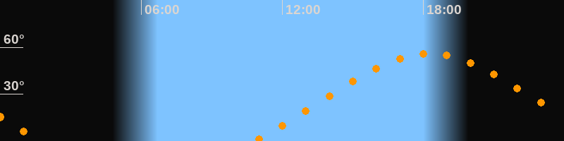 | Höchster Stand (Kulmination) | 18:15 Uhr (h = 55,8°) |