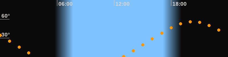 | Aufgang | 12:48 Uhr im Nordosten (αAz = 62,5°) |