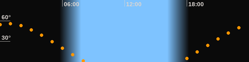 | Aufgang | 17:18 Uhr im Nordosten (αAz = 62,5°) |