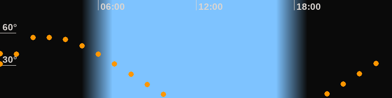 | Untergang | 10:28 Uhr im Nordwesten (αAz = 297,5°) |