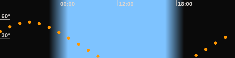 | Aufgang | 19:24 Uhr im Nordosten (αAz = 62,5°) |