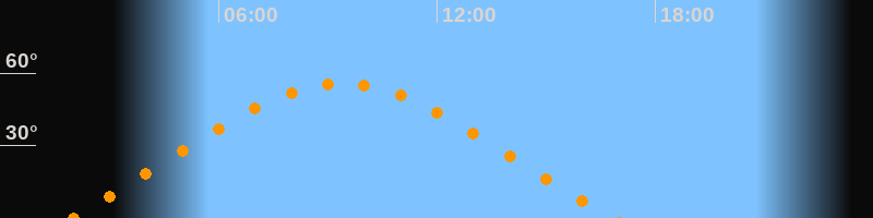 | Höchster Stand (Kulmination) | 09:23 Uhr (h = 55,8°) |