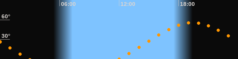 | Höchster Stand (Kulmination) | 19:25 Uhr (h = 55,8°) |