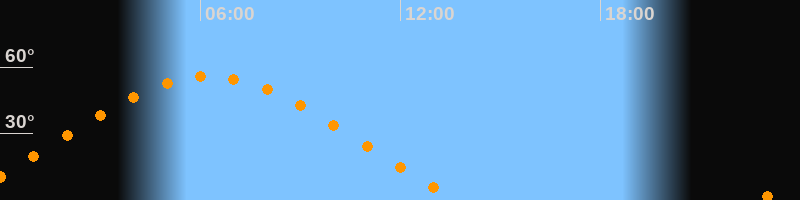 | Höchster Stand (Kulmination) | 06:15 Uhr (h = 55,8°) |