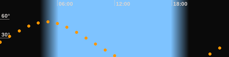 | Untergang | 12:20 Uhr im Nordwesten (αAz = 297,5°) |