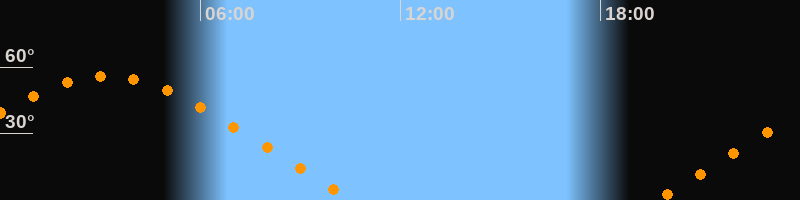 | Höchster Stand (Kulmination) | 03:10 Uhr (h = 55,8°) |
