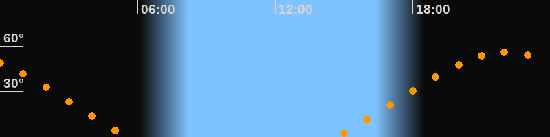 | Aufgang | 14:36 Uhr im Nordosten (αAz = 62,5°) |