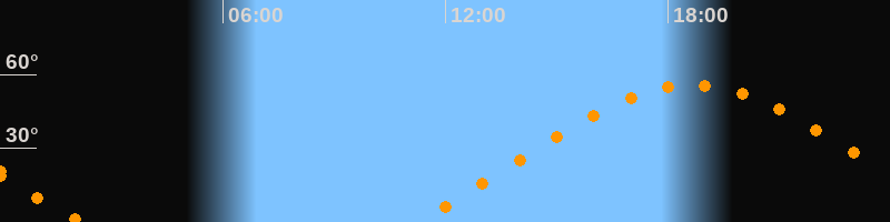 | Aufgang | 11:12 Uhr im Nordosten (αAz = 62,5°) |