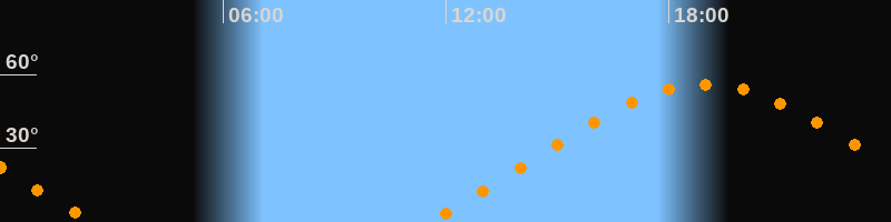 | Aufgang | 11:30 Uhr im Nordosten (αAz = 62,2°) |