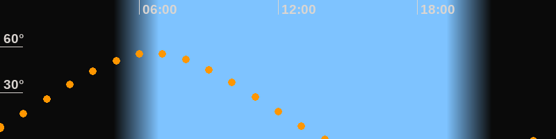 | Höchster Stand (Kulmination) | 06:34 Uhr (h = 56°) |