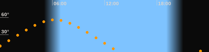 | Höchster Stand (Kulmination) | 06:15 Uhr (h = 56°) |