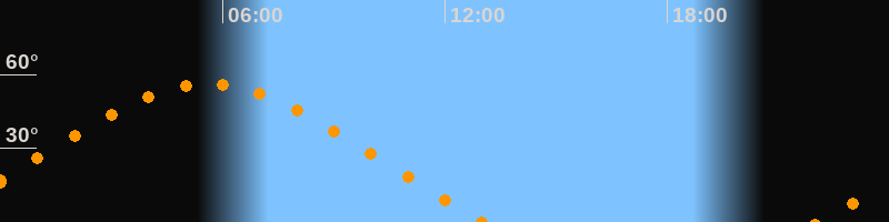 | Untergang | 13:05 Uhr im Nordwesten (αAz = 297,8°) |