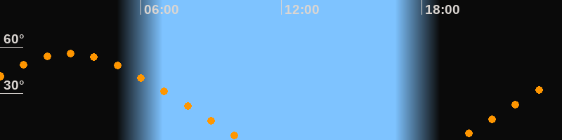 | Untergang | 10:26 Uhr im Nordwesten (αAz = 297,8°) |