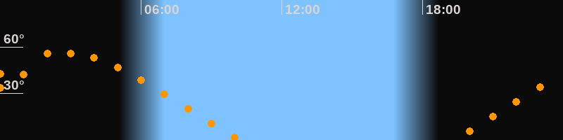 | Aufgang | 19:14 Uhr im Nordosten (αAz = 62,2°) |