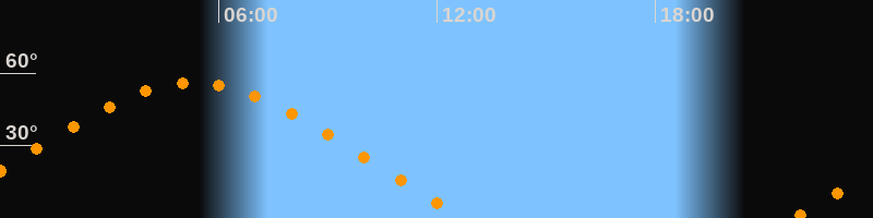 | Höchster Stand (Kulmination) | 05:18 Uhr (h = 56°) |