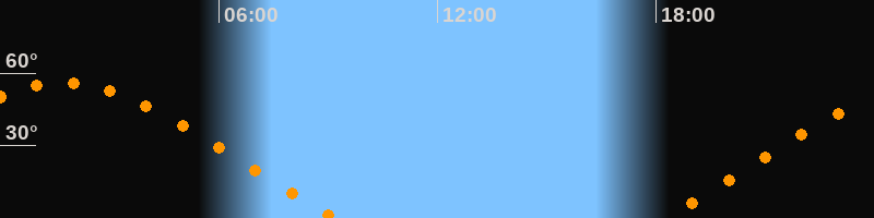 | Untergang | 09:14 Uhr im Nordwesten (αAz = 297,8°) |