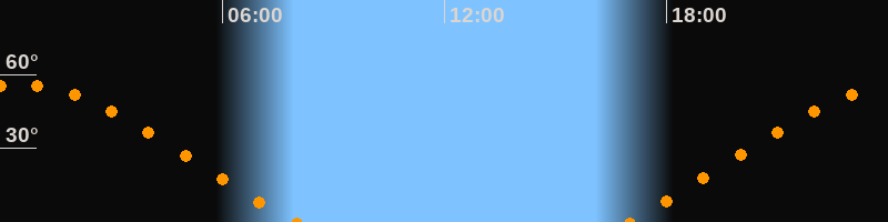 | Untergang | 08:00 Uhr im Nordwesten (αAz = 297,8°) |