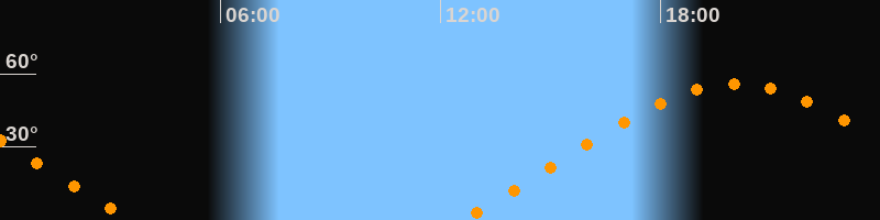 | Aufgang | 12:35 Uhr im Nordosten (αAz = 62,2°) |